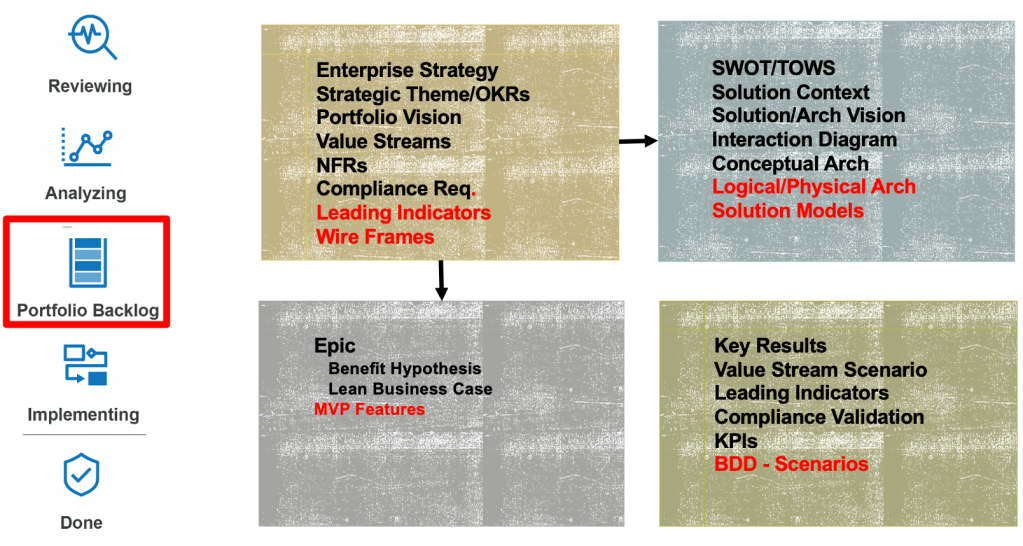 With those foundational concepts I will move onto the question of LPM artifacts in the Solution Intent. As a thought exercise, we will begin with the Lean Portfolio artifacts and Portfolio Epics in the Portfolio Kanban Funnel – and thread up through various artifacts, and how follow-on artifacts and concurrent artifacts arise. Along the way, we will uncover a “Definition of Ready” that encompasses both the Lean-Agile and the System Specification artifacts.
