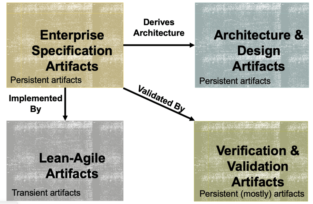 The Lean-Agile artifacts are created to implement the System Specifications in alignment with the Architecture and Design artifacts.